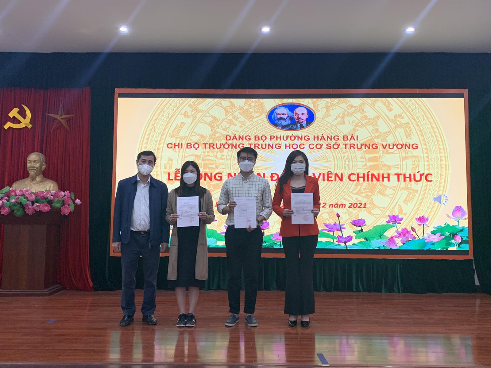 Vào 15h00 ngày Thứ Năm 23/12/2021 tại Hội trường THCS Trưng Vương đã tiến hành kết nạp cho 04 quần chúng vào hàng ngũ của Đảng và trao quyết định cho 03 Đảng viên chính thức.