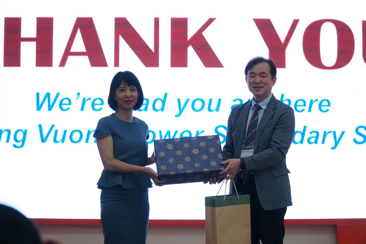 Kết thúc buổi lễ, trường THCS Trưng Vương, trường KISH và trường JISA cùng nhau trao quà lưu niệm.