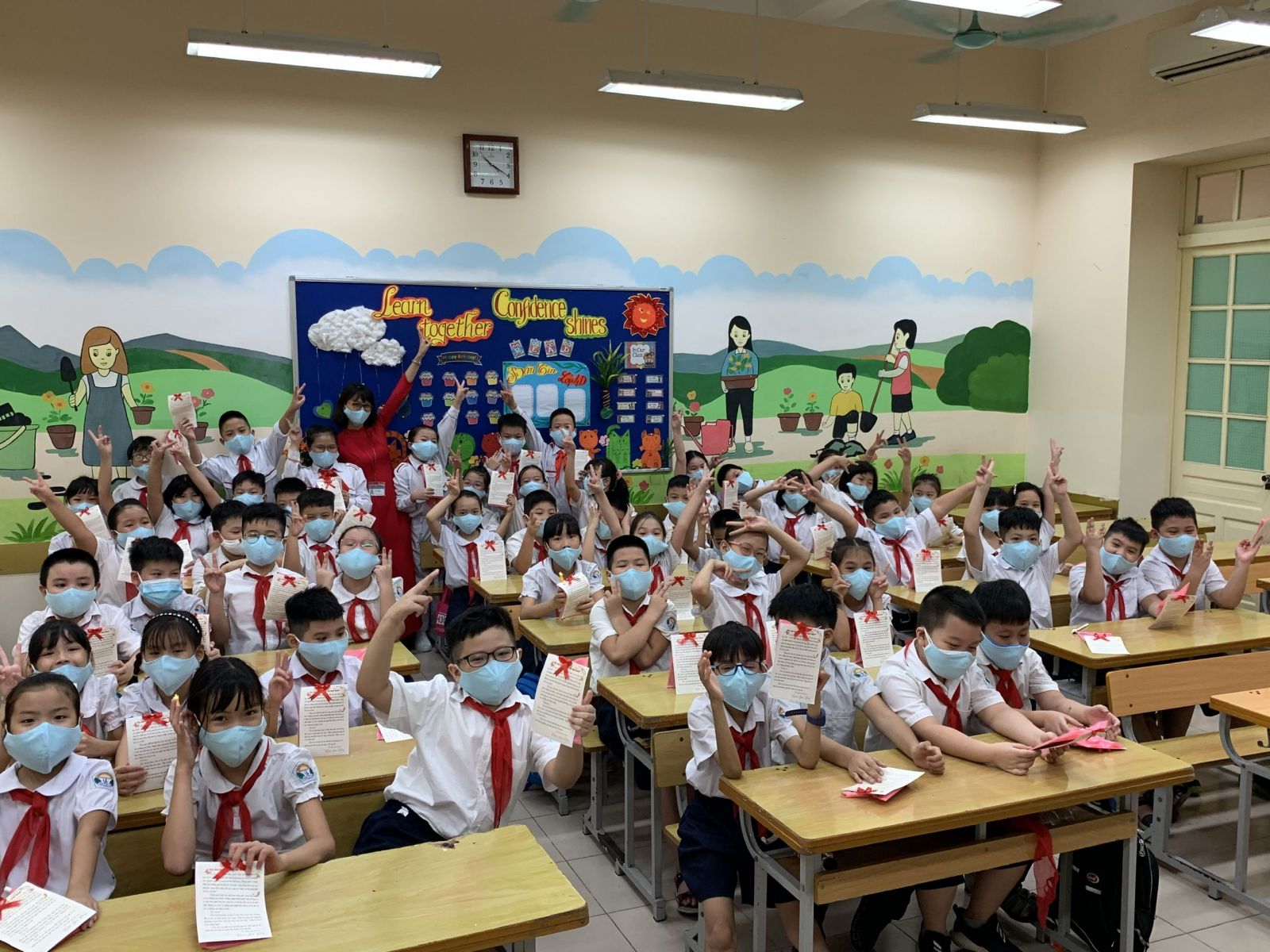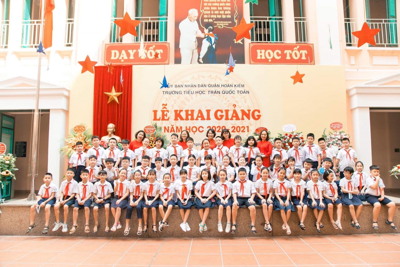 Hình ảnh đáng nhớ của cô giáo Nguyễn Hồng Nhung và các đồng nghiệp cùng tập thể lớp 4D nhân ngày Khai trường năm học 2020-2021