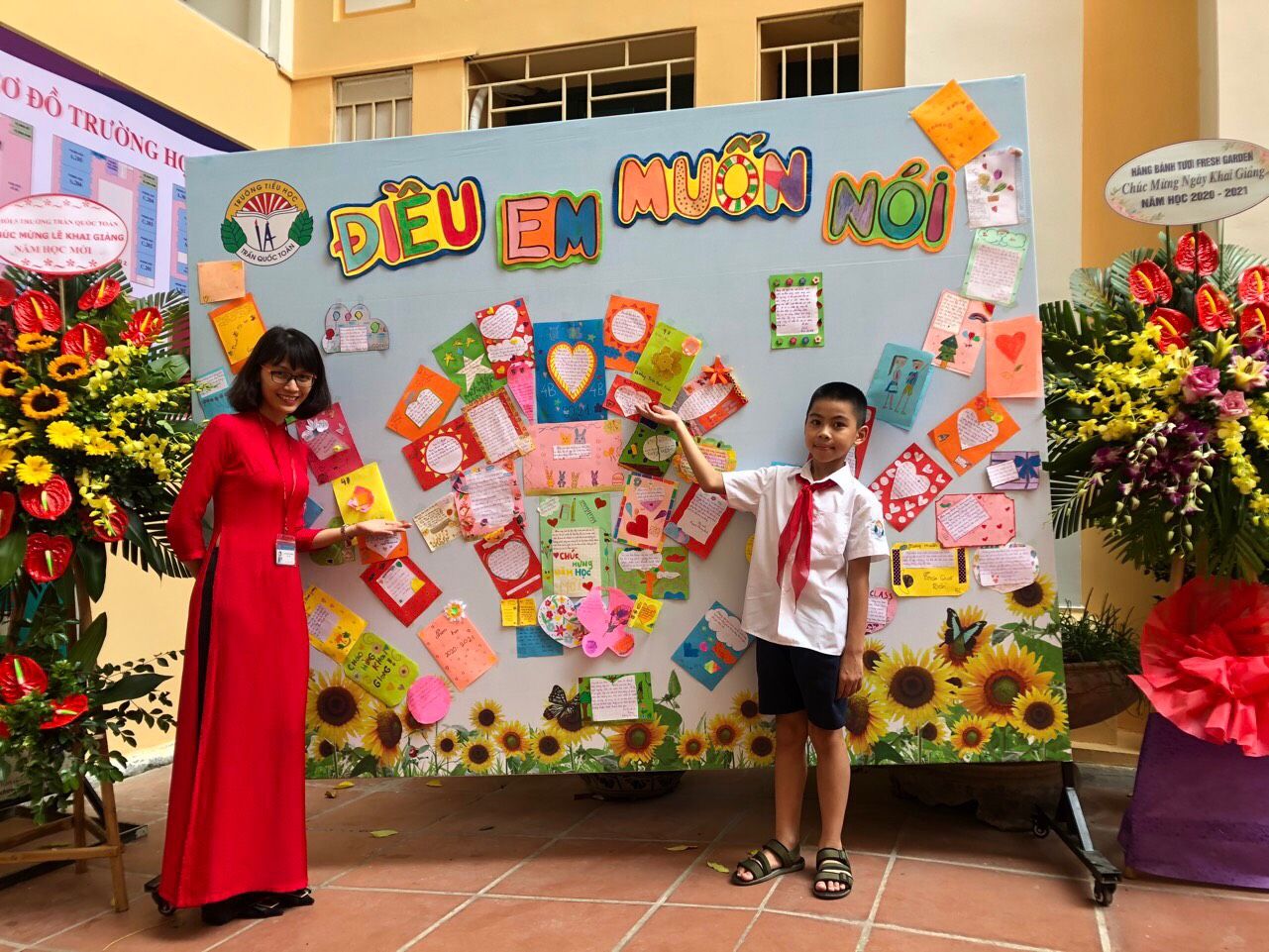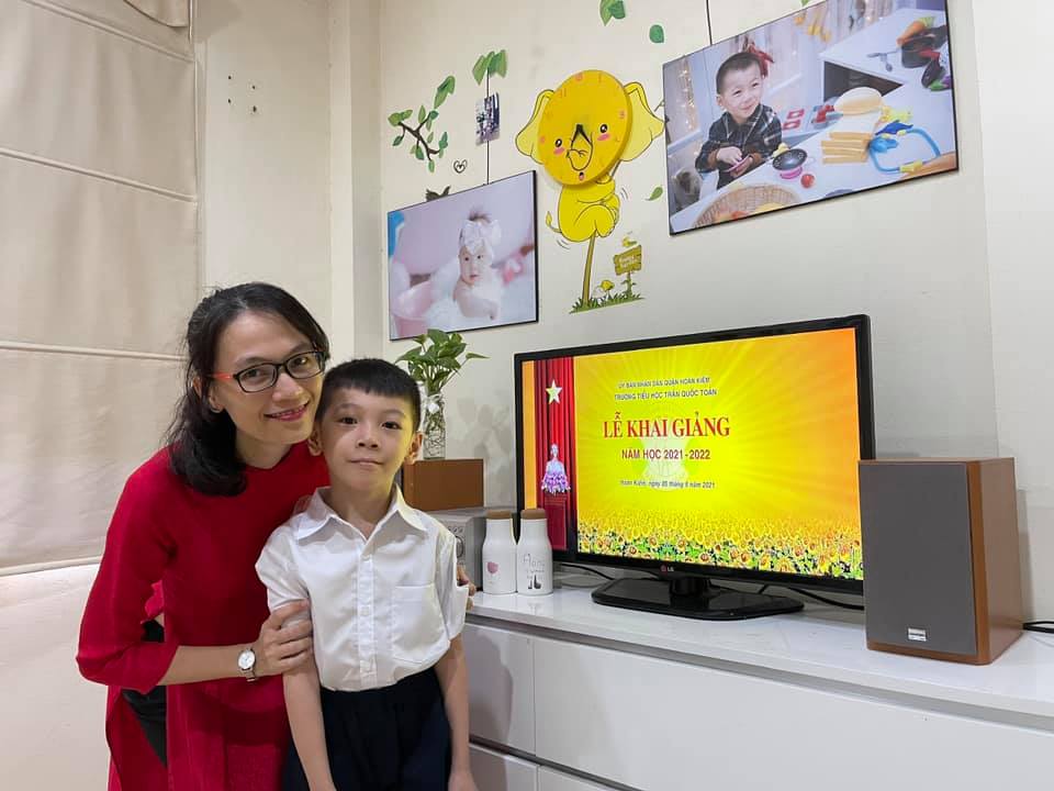 Cô Nguyễn Hồng Nhung bên con trai yêu quý nhân dịp Khai giảng năm học mới 2021-2022