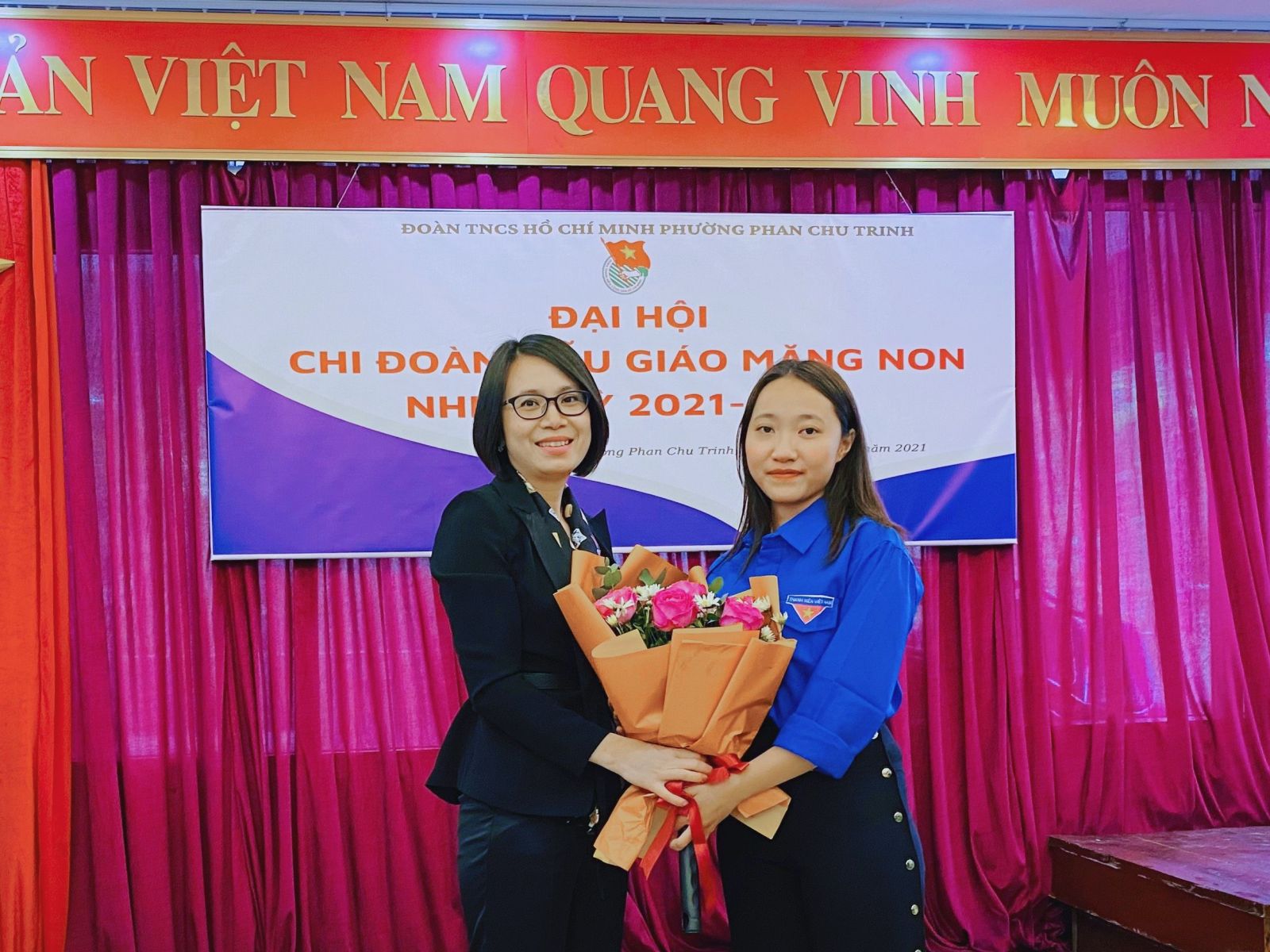 Đồng chí Nguyễn Thị Phương Lan - Bí thư chi bộ tặng hoa chúc mừng Chi Đoàn