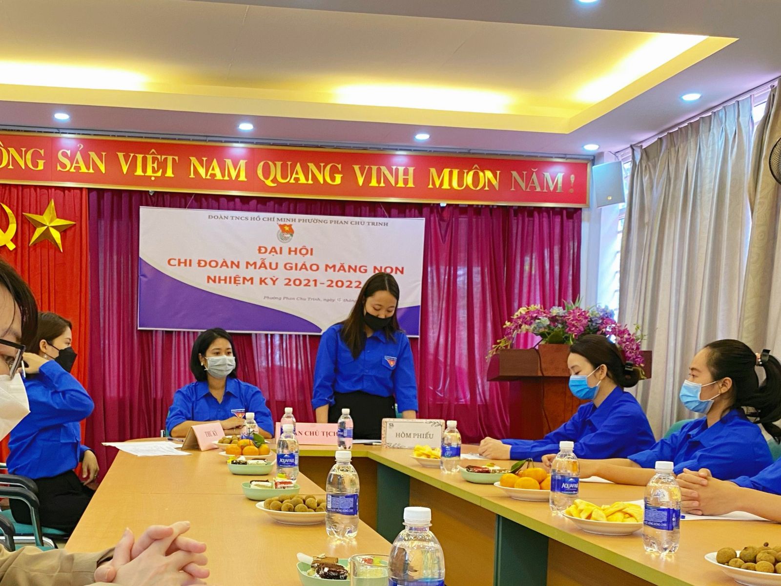 Được sự nhất trí của Ban thường vụ Đoàn Phường Phan Chu Trinh, chiều ngày 15/12/2021, Chi đoàn trường Mẫu giáo Măng Non đã tổ chức Đại hội Chi đoàn nhiệm kỳ 2021-2022. Dự Đại hội có đồng chí Lâm Quỳnh Trang - Bí thư Đoàn Phường Phan Chu Trinh; đồng chí Nguyễn Thị Phương Lan - Bí thư chi bộ, Hiệu trưởng nhà trường; đồng chí Dương Việt Hoa - Chủ tịch công đoàn; đồng chí Vũ Thu Hằng - Phó hiệu trưởng cùng toàn thể đoàn viên trong Chi đoàn trường Mẫu giáo Măng Non.