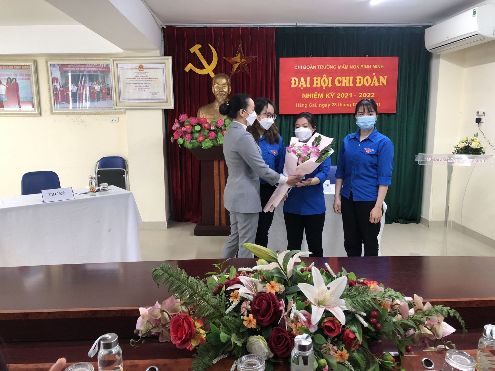 Đ/c Bí thư tặng hoa chúc mừng BCH Chi đoàn nhiệm kỳ 2021 - 2022