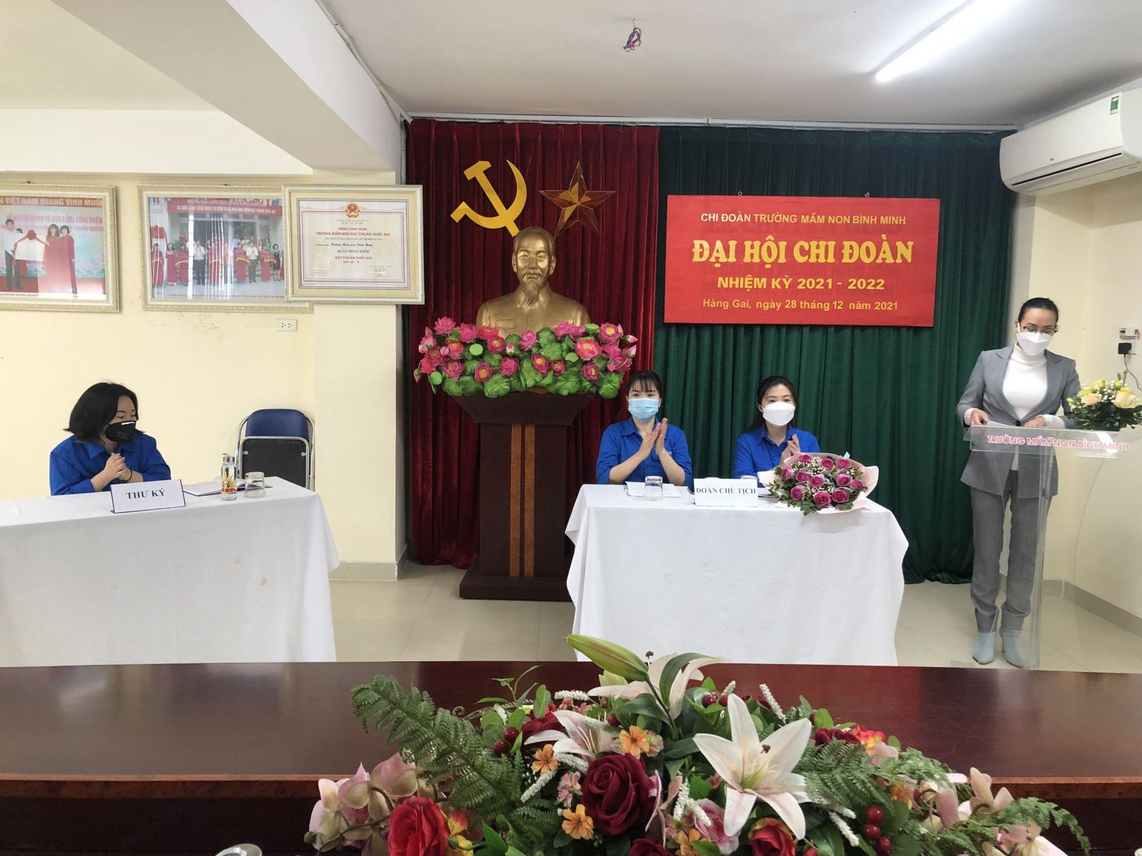 Ngày 28/12/2021, tại tầng 6 - phòng Hội đồng trường mầm non Bình Minh - số 55 Hàng Bông- Phường Hàng Gai- quận Hoàn Kiếm. Chi đoàn Trường Mầm non Bình Minh đã tổ chức Đại hội Chi đoàn nhiệm kỳ 2021 – 2022.