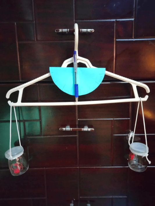 Ảnh : Cân tự chế sau khi HS học xong bài đo khối lượng