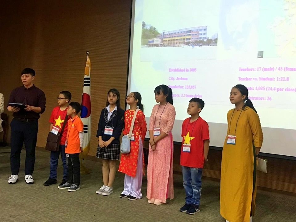 Giáo viên và học sinh của trường THCS Nguyễn Du tham gia chương trình trao đổi, giao lưu văn hóa giữa Việt Nam và Hàn Quốc.