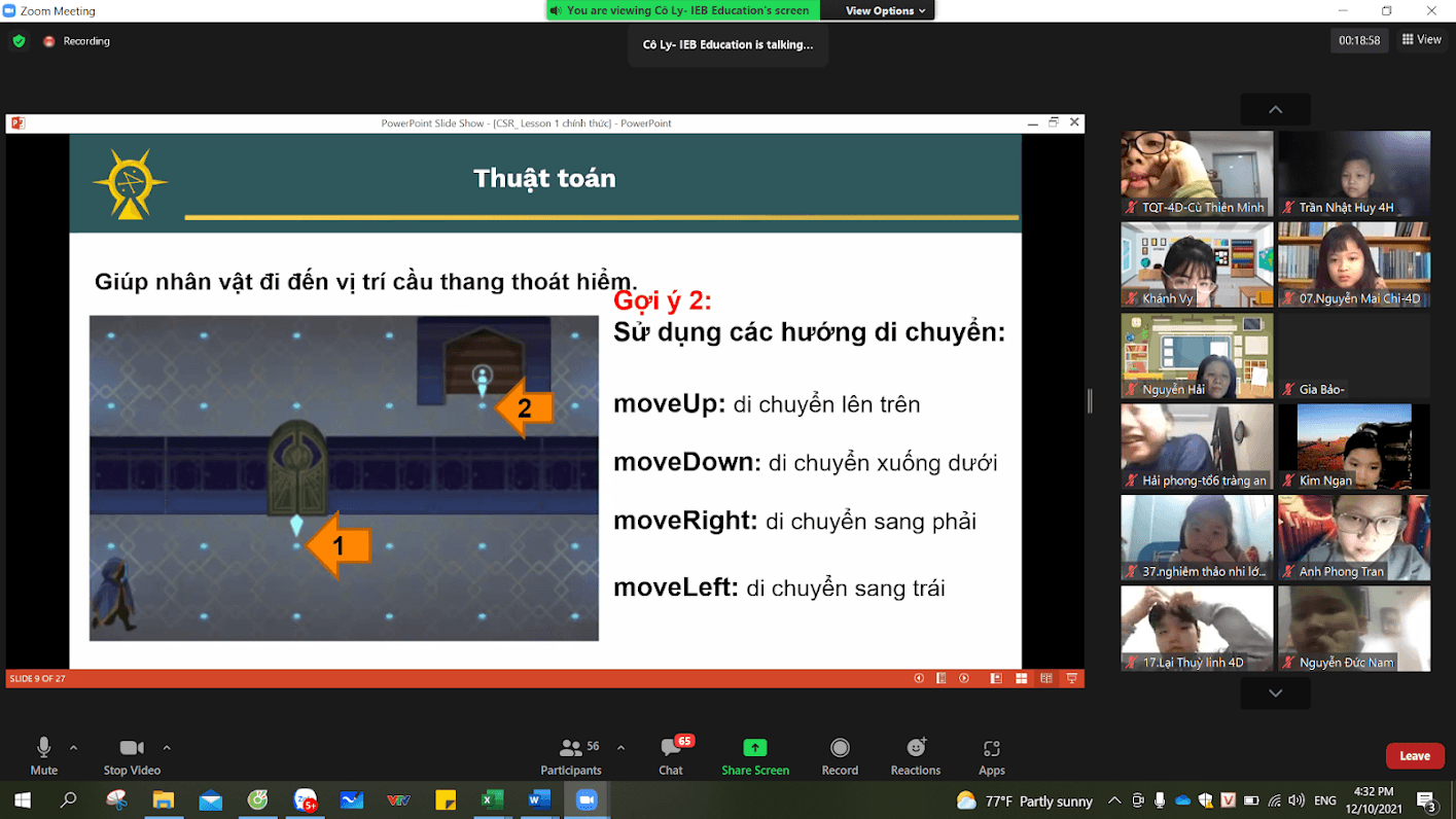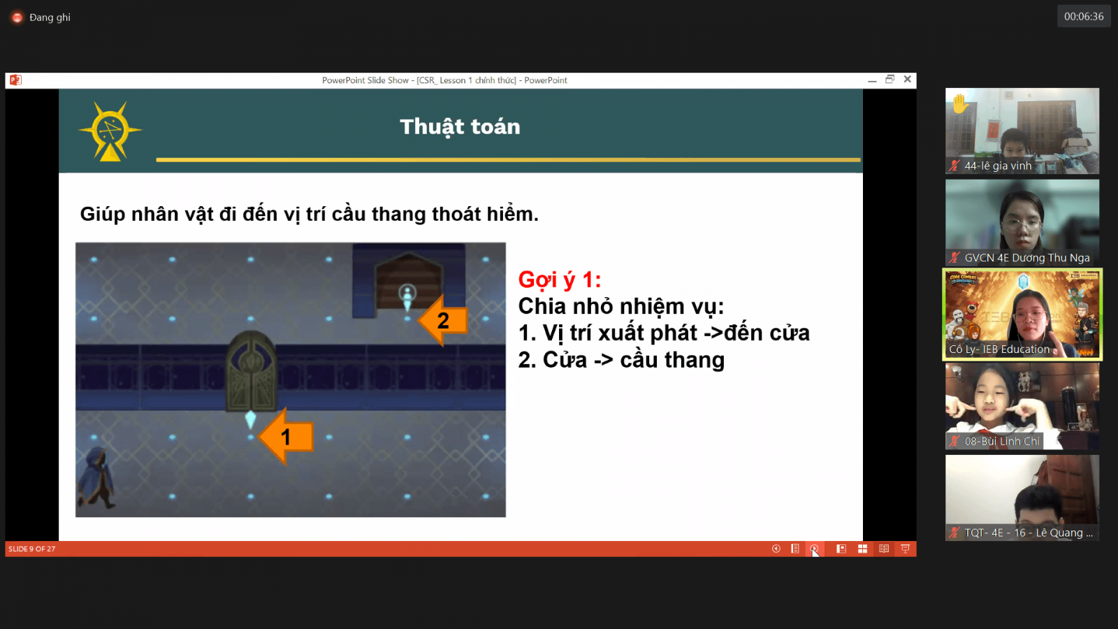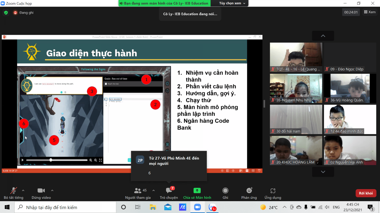 Các em học sinh được đắm mình trong một trò chơi phiêu lưu, nhanh chóng áp dụng các khái niệm lập trình để giải quyết nhiệm vụ và thử thách của chương trình, trong đó là kiến thức về lập trình theo ngôn ngữ lập trình Python và JavaScript. Những khái niệm tưởng chừng khô khan và hóc búa như: câu lệnh, thuật toán, mã code… đã trở nên dễ hiểu nhờ sự hướng dẫn nhiệt tình, giải thích cụ thể và gần gũi của các giảng viên.