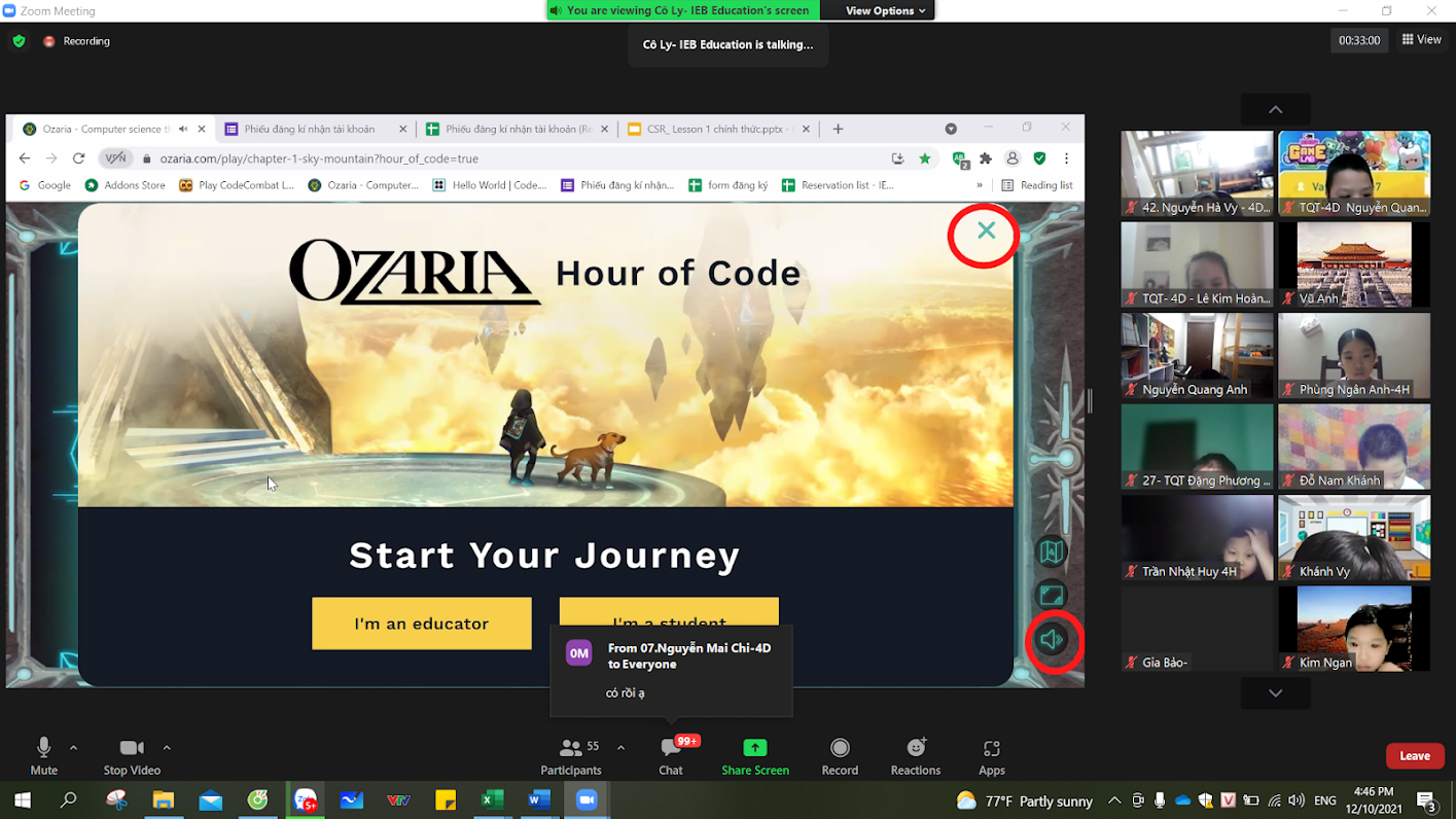 Quả thật, con đường giải cứu thế giới thật không hề đơn giản với biết bao thử thách đang đe dọa, nhưng các bạn học sinh khối 4 của trường Tiểu học Trần Quốc Toản đã được "trang bị những quyền năng phép thuật Coding" để có thể sử dụng trong thế giới Ozaria. Nhiệm vụ của các em học sinh là “đem lại ánh sáng cho thế giới” bằng cách lần lượt vượt qua các thử thách đưa ra.