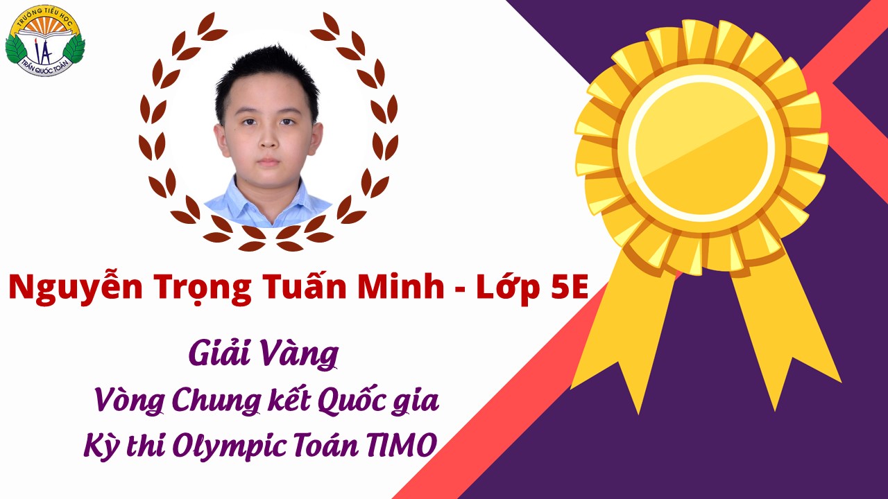 Nguyễn Trọng Tuấn Minh – học sinh lớp 5E trường Tiểu học Trần Quốc Toản đạt giải Vàng vòng Chung kết Quốc gia kỳ thi Olympic Toán TIMO 2021 - 2022.