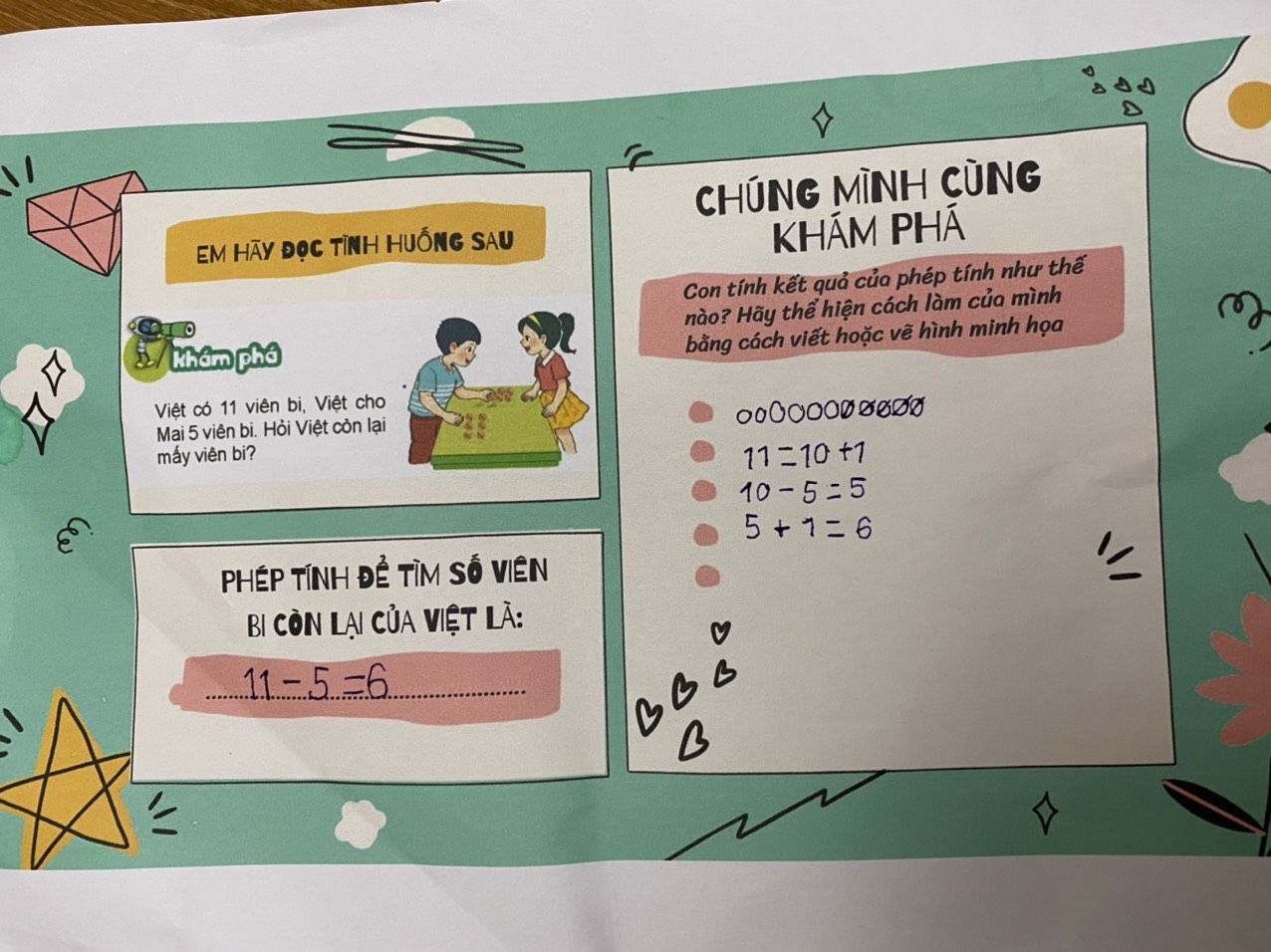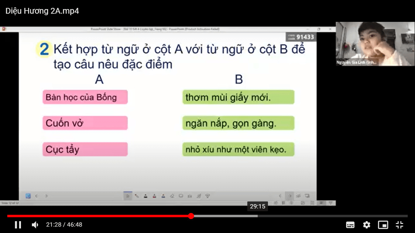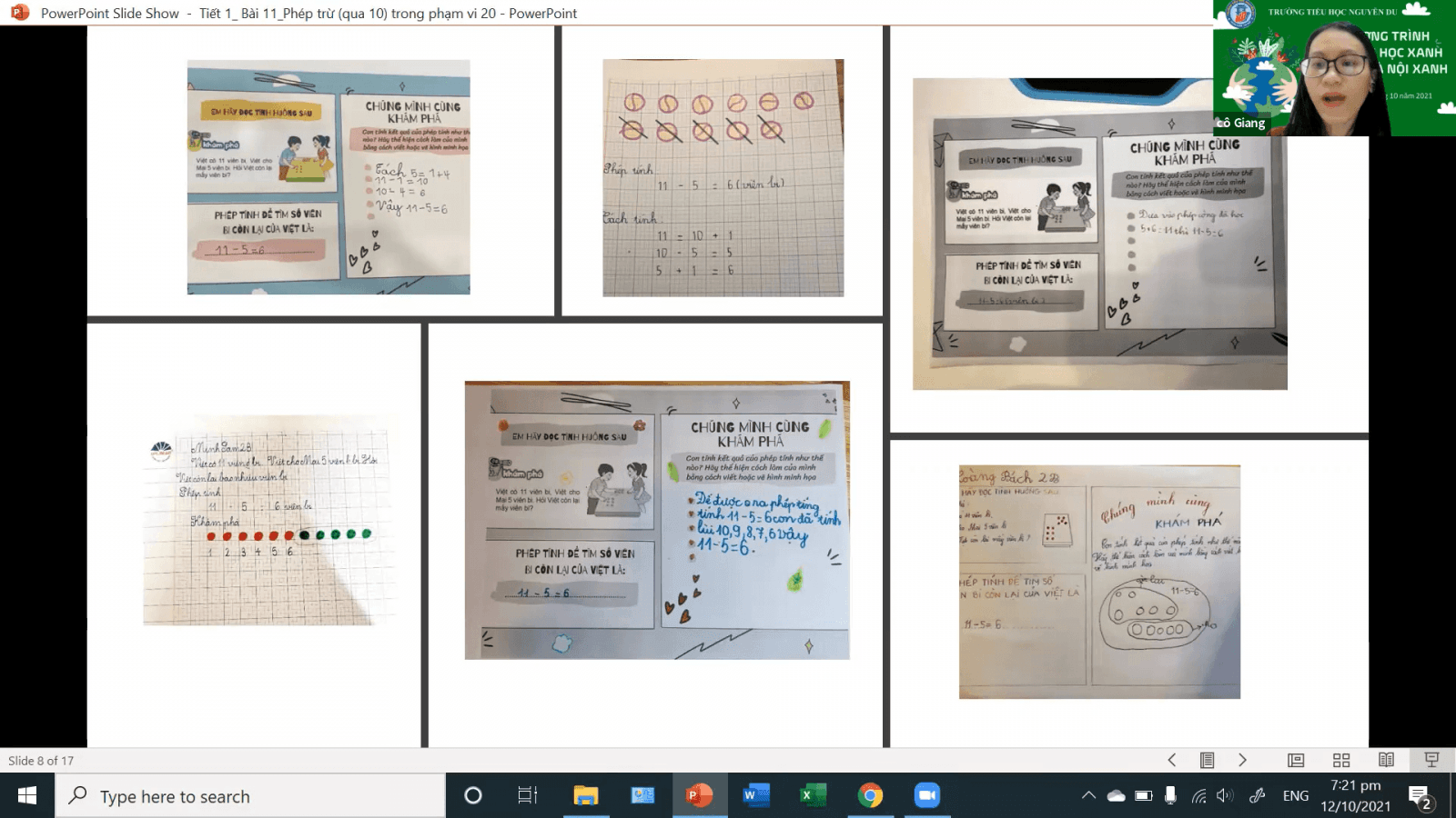 Toán học là một môn học tư duy đòi hỏi sự tập trung chú ý của người học. Vậy làm thế nào để tiết học Toán trực tuyến thu hút, lôi cuốn được sự tham gia, tập trung chú ý của các con học sinh. Trong tiết Toán bài Phép trừ qua 10 trong phạm vi 20, ở hoạt động khám phá, cô giáo Nguyễn Hương Giang giáo viên chủ nhiệm lớp 2A đã trao quyền chủ động cho các con học sinh tự tìm hiểu, khám phá kiến thức trước ở nhà qua phiếu hướng dẫn học. Trong phiếu hướng dẫn học cô giáo đã khuyến khích học sinh nói, viết, vẽ ra cách tính của mình. Ngoài phiếu hướng dẫn học của học sinh, cô giáo gửi thêm phiếu gợi ý đáp án dành cho cha mẹ học sinh sử dụng để hướng dẫn và kiểm tra kết quả của con. Qua việc tự tìm hiểu, khám phá kiến thức ở nhà sẽ giúp các con phát triển năng lực giải quyết vấn đề. Trong tiết học cô giáo đã khéo léo trao quyền chủ động cho các con tự trình bày, báo cáo kết quả của mình. Việc kết hợp sử dụng các phần mềm dạy học trong tiết học như Wordwall, Classkick đã mang lại hiệu quả và sự hào hứng cho các con học sinh.