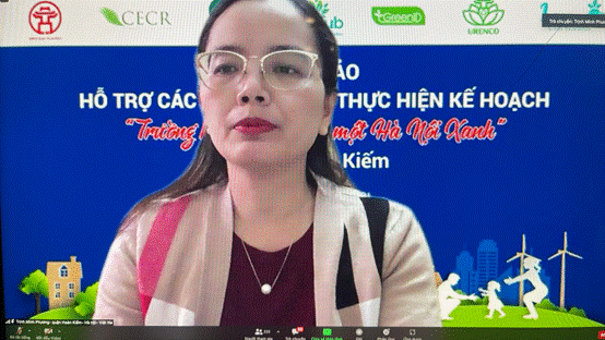 Đồng chí Trịnh Thị Minh Phương - Phó trưởng phòng Tài nguyên môi trường Quận Hoàn Kiếm giới thiệu những trung tâm hỗ trợ các nhà trường trong việc triển khai các chủ đề của chương trình