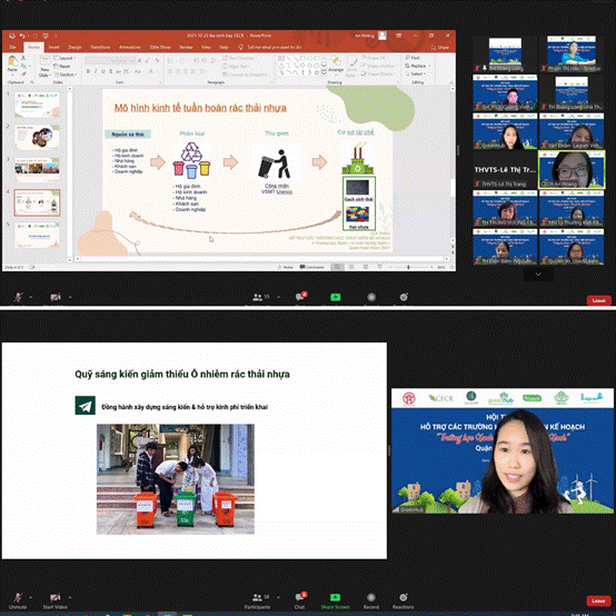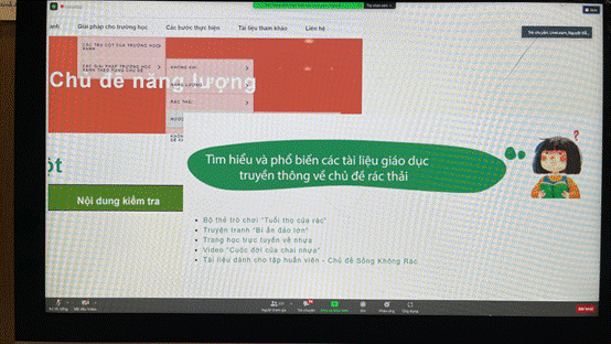 Năm 2021 là năm đầu tiên triển khai chương trình lại trong bối cảnh học sinh phải học trực tuyến vì ảnh hưởng của dịch bệnh Covid-19. Chính vì vậy Phòng GDĐT Quận đã xây dựng rõ lộ trình cho từng giai đoạn triển khai tới các nhà trường. Năm 2021 tập trung đẩy mạnh công tác tuyên truyền, dưới nhiều hình thức, phong phú, đa dạng, thường xuyên, có sức lan tỏa mạnh mẽ. Từ những hoạt động truyền thông thiết thực hướng tới đối tượng học sinh trong trường sẽ giúp các em học sinh có nhận thức đúng để hành động đúng. Hy vọng rằng từ những gì được trang bị hôm nay, trong tương lai các em sẽ trở thành những công dân văn minh và sống hài hoà với thiên nhiên