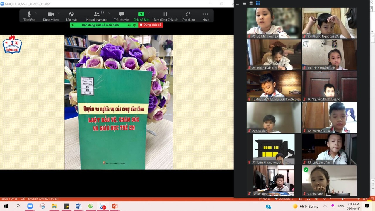 Qua phần giới thiệu sách tháng 11 của thư viện nhà trường, chúng ta thấy tầm quan trọng trong việc phổ biến quyền và bổn phận trẻ em theo Luật bảo vệ, chăm sóc và giáo dục trẻ em là một việc làm cần thiết, từ trẻ em đến người lớn đều phải đọc luật này, thấu hiểu để thực hiện đúng quyền và bổn phận của một công dân.