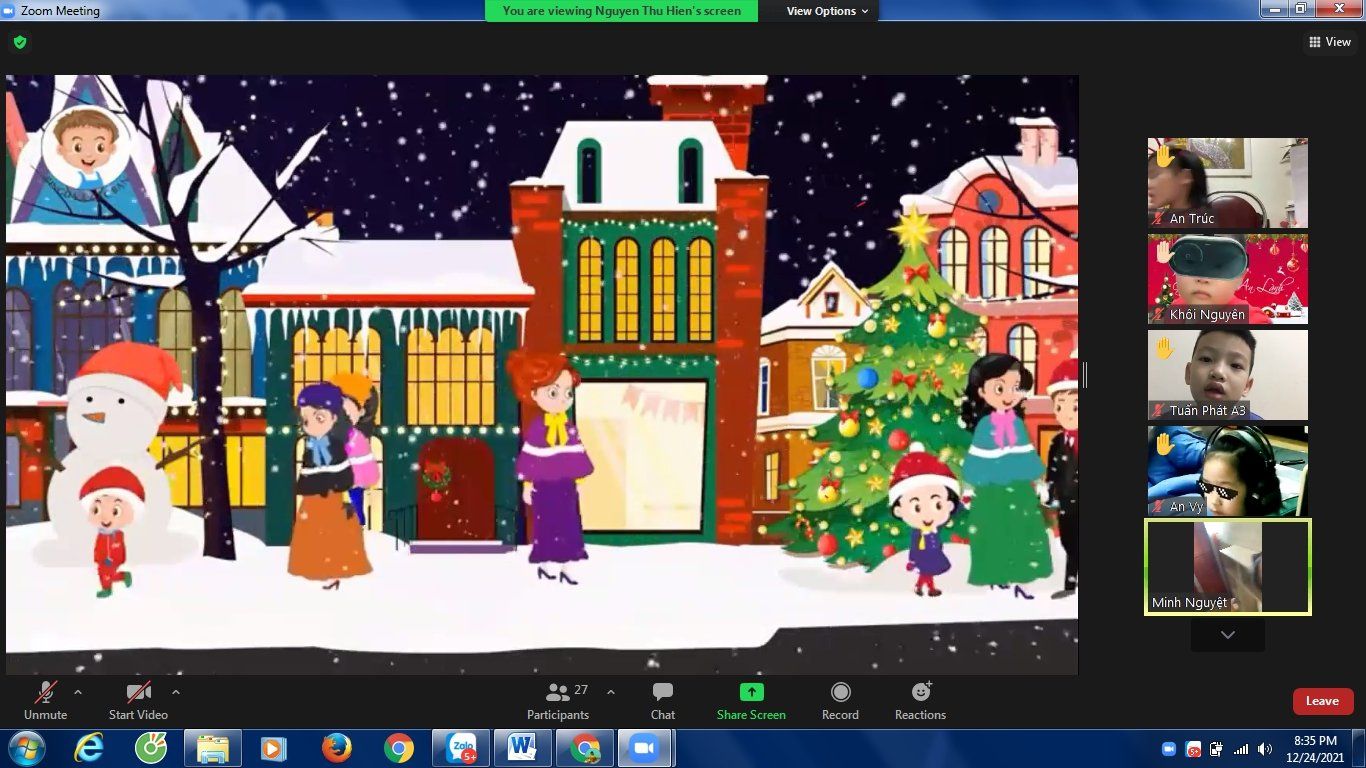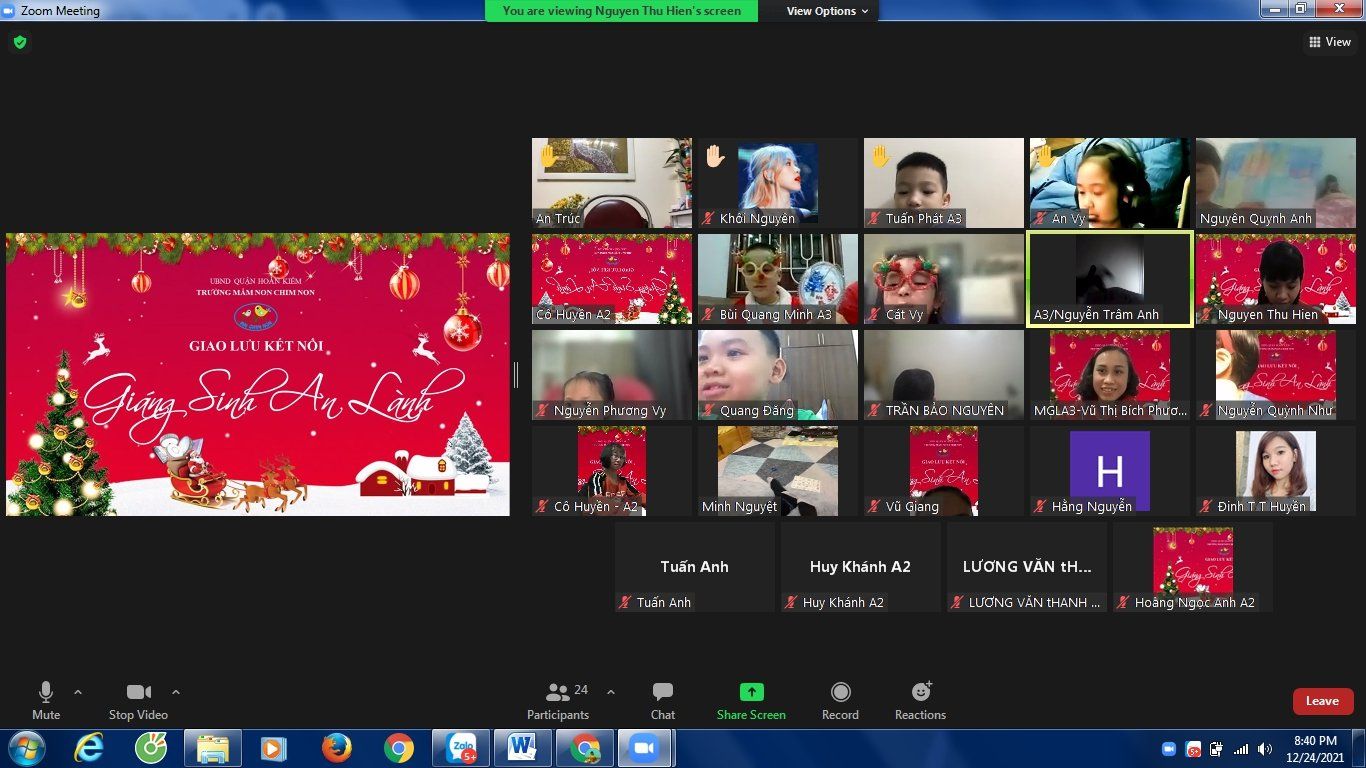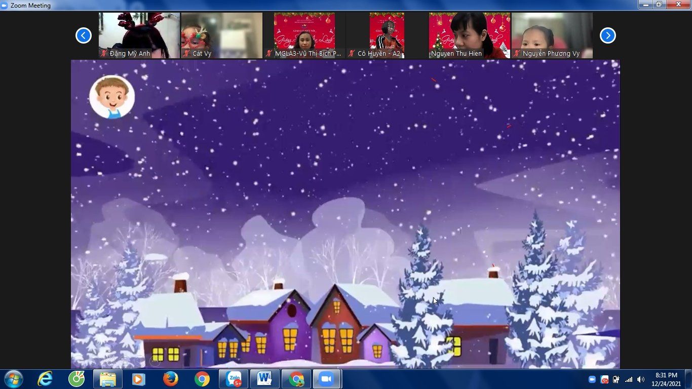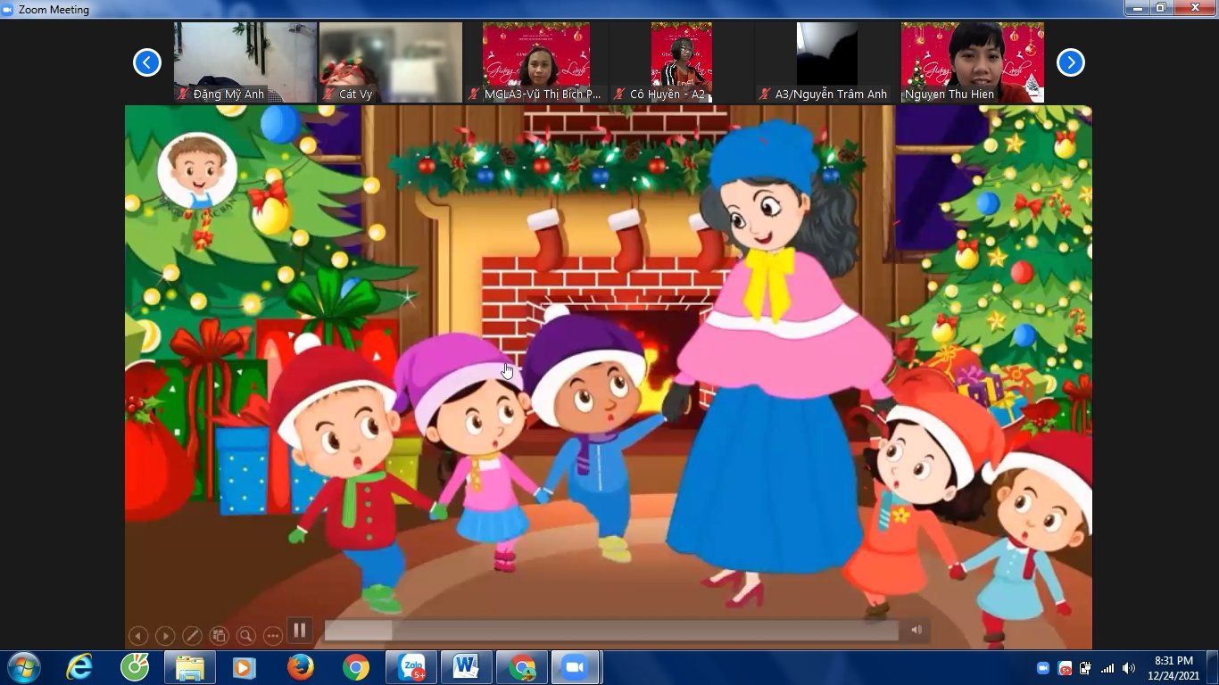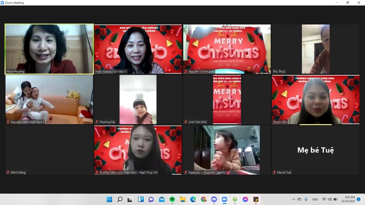 Noel hằng năm, các bé của Trường Mầm non Chim Non cũng đã làm rất nhiều đồ chơi trang trí lớp của mình để chào đón ông già Noel và năm mới, các bé còn được các cô luyện tập nhiều tiết mục văn nghệ để biểu diễn trong ngày Noel. Nhưng năm nay thật đặc biệt, do dịch bệnh covid-19 các bé phải nghỉ ở nhà để phòng dịch nhưng không ngừng tham gia các hoạt động với nhà trường. Tuy nhiên, để tạo cho trẻ có những buổi hoạt động ý nghĩa với cô giáo và các bạn, Trường Mầm non Chim Non đã tổ chức buổi giao lưu trực tuyến với các bạn nhỏ thân yêu trong trường.