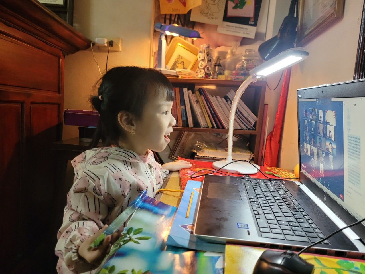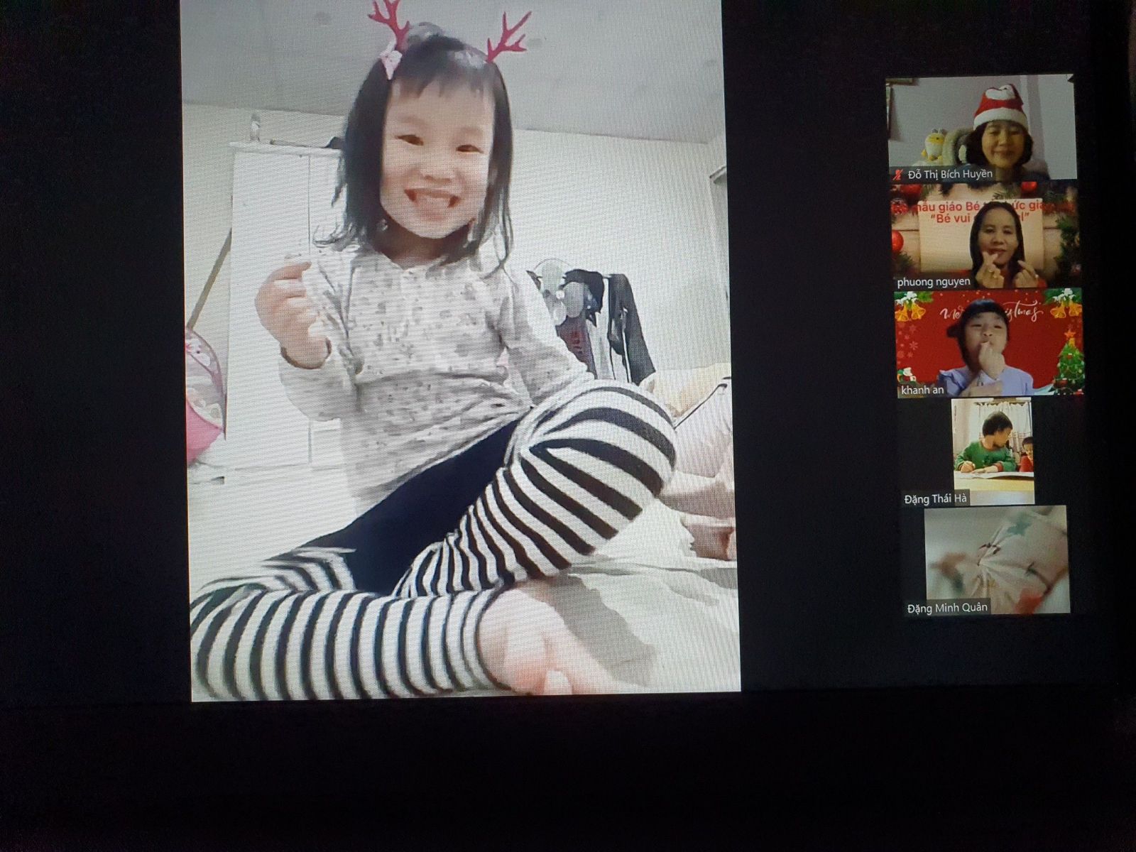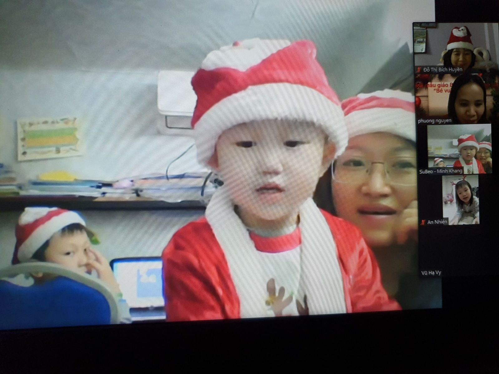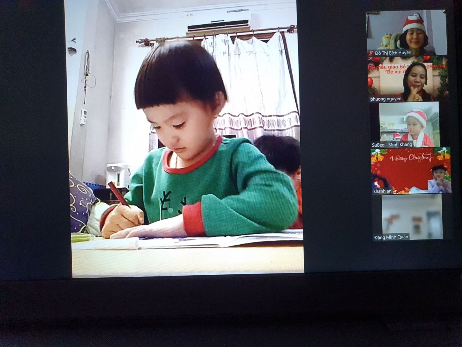 Noel hằng năm, các bé của Trường Mầm non Chim Non cũng đã làm rất nhiều đồ chơi trang trí lớp của mình để chào đón ông già Noel và năm mới, các bé còn được các cô luyện tập nhiều tiết mục văn nghệ để biểu diễn trong ngày Noel. Nhưng năm nay thật đặc biệt, do dịch bệnh covid-19 các bé phải nghỉ ở nhà để phòng dịch nhưng không ngừng tham gia các hoạt động với nhà trường. Tuy nhiên, để tạo cho trẻ có những buổi hoạt động ý nghĩa với cô giáo và các bạn, Trường Mầm non Chim Non đã tổ chức buổi giao lưu trực tuyến với các bạn nhỏ thân yêu trong trường.