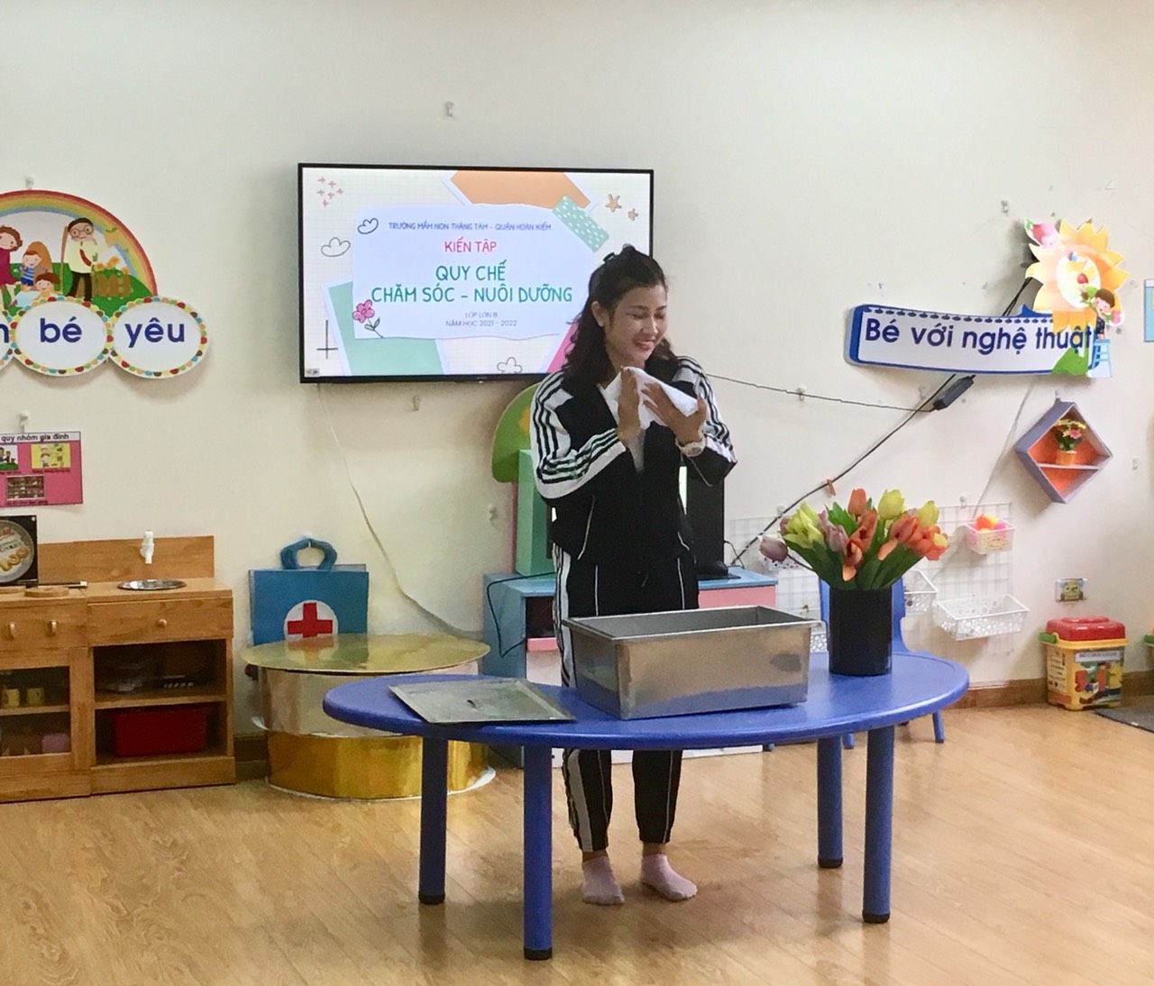 Trong hoạt động này từng giáo viên tham dự không những nắm được kiến thức về công tác chăm sóc học sinh mà giáo viên còn được thực hành các bước chăm sóc trẻ trước và sau khi ăn. Đây cũng là biện pháp để giáo viên một lần nữa được ôn lại các kỹ năng cần thiết giáo viên cần chăm sóc trẻ khi trẻ quay trở lại trường học sau thời gian nghỉ chống dịch.