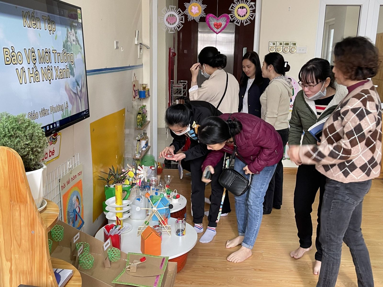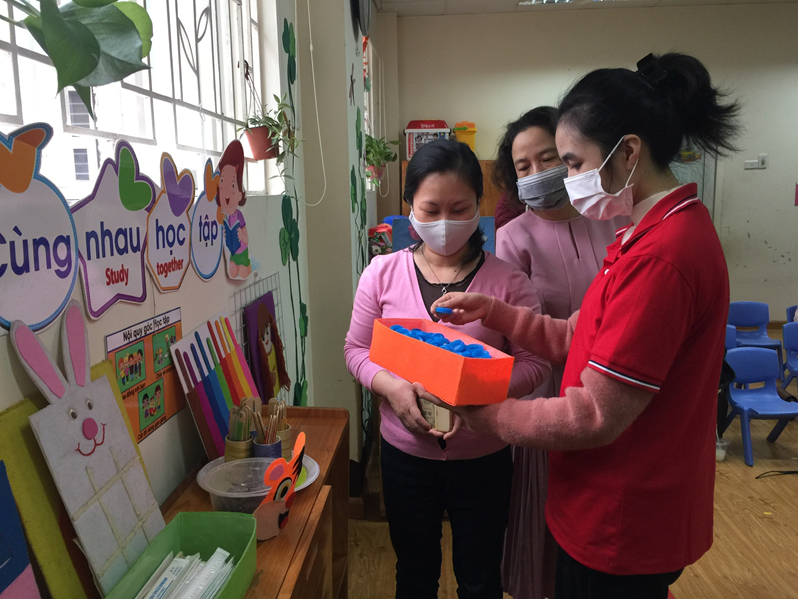 Các cô giáo học hỏi kinh nghiệm của nhau tại các góc chơi của lớp