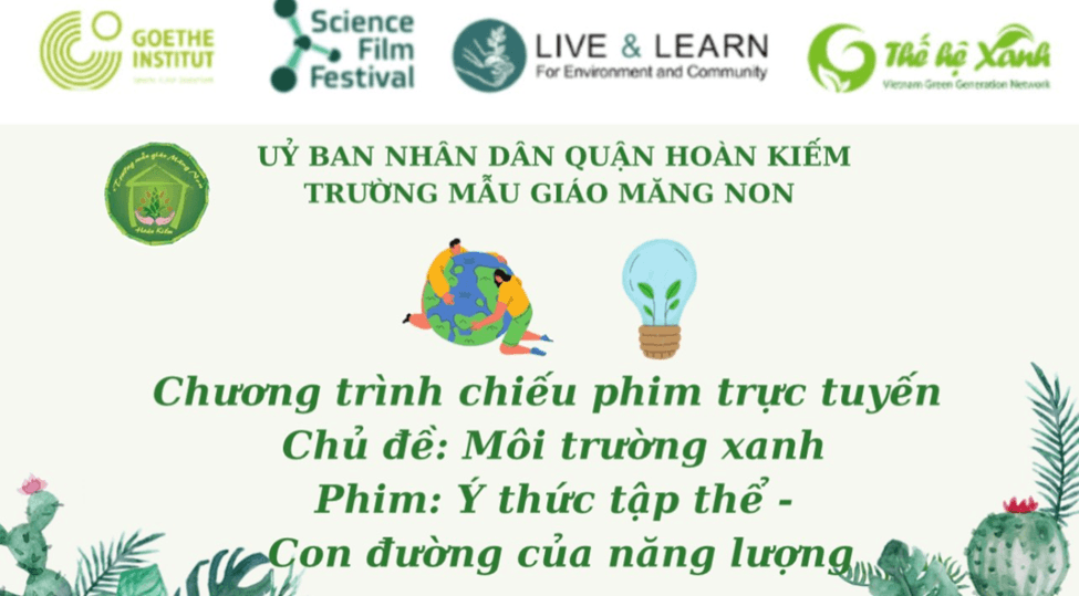 Cuộc sống phát triển ngày càng hiện đại, đời sống vật chất tinh thần của chúng ta ngày càng được cải thiện, tuy nhiên đối lập với đó là tình trạng ô nhiễm môi trường có những diễn biến phức tạp. Giáo dục trẻ bảo vệ môi trường chính là điều cấp thiết, hướng đến một môi trường “Xanh- sạch- đẹp- an toàn” cho chính các bé. Để hình thành cho các bé có những hành vi thói quen tốt về bảo vệ môi trường xanh và khuyến khích các bé thực hiện một số các hoạt động phù hợp với lứa tuổi trong chuỗi các hoạt động giáo dục truyền thông và thực hành cuộc sống về Chủ đề "Trường học xanh- Vì một Hà Nội xanh" cho các bé mầm non. Trường mẫu giáo Măng Non đã tổ chức chiếu phim trong Liên hoan phim Khoa học SFF 2021 do Viện Goethe và Live & Learn đồng hành tổ chức. Bộ phim được chiếu cho học sinh mang tên: "Ý thức tập thể- Con đường của năng lượng". Bộ phim lấy cảm hứng từ các địa điểm Isa, nhân vật chính đã đi qua cũng như những điều học được từ các hành khách khác. Isa thuật lại những tìm tòi về các nguồn cung cấp năng lượng và tầm quan trọng của việc sử dụng năng lượng hiệu quả.
