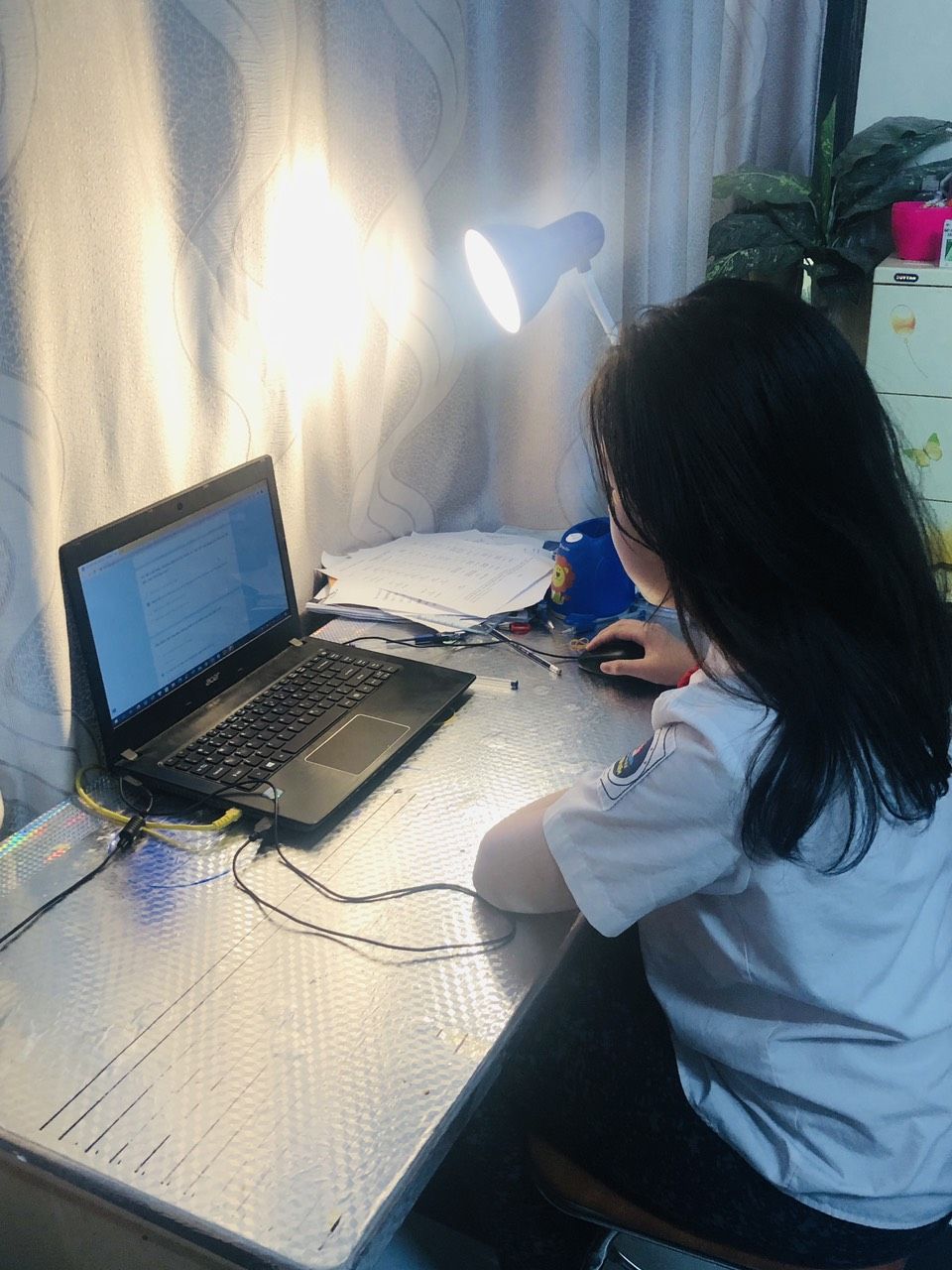 - Các con học sinh ngồi trước máy tính, quay góc rộng để đảm bảo thầy cô coi thi thấy rõ hai bên -