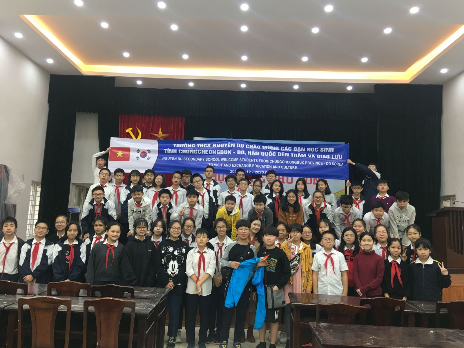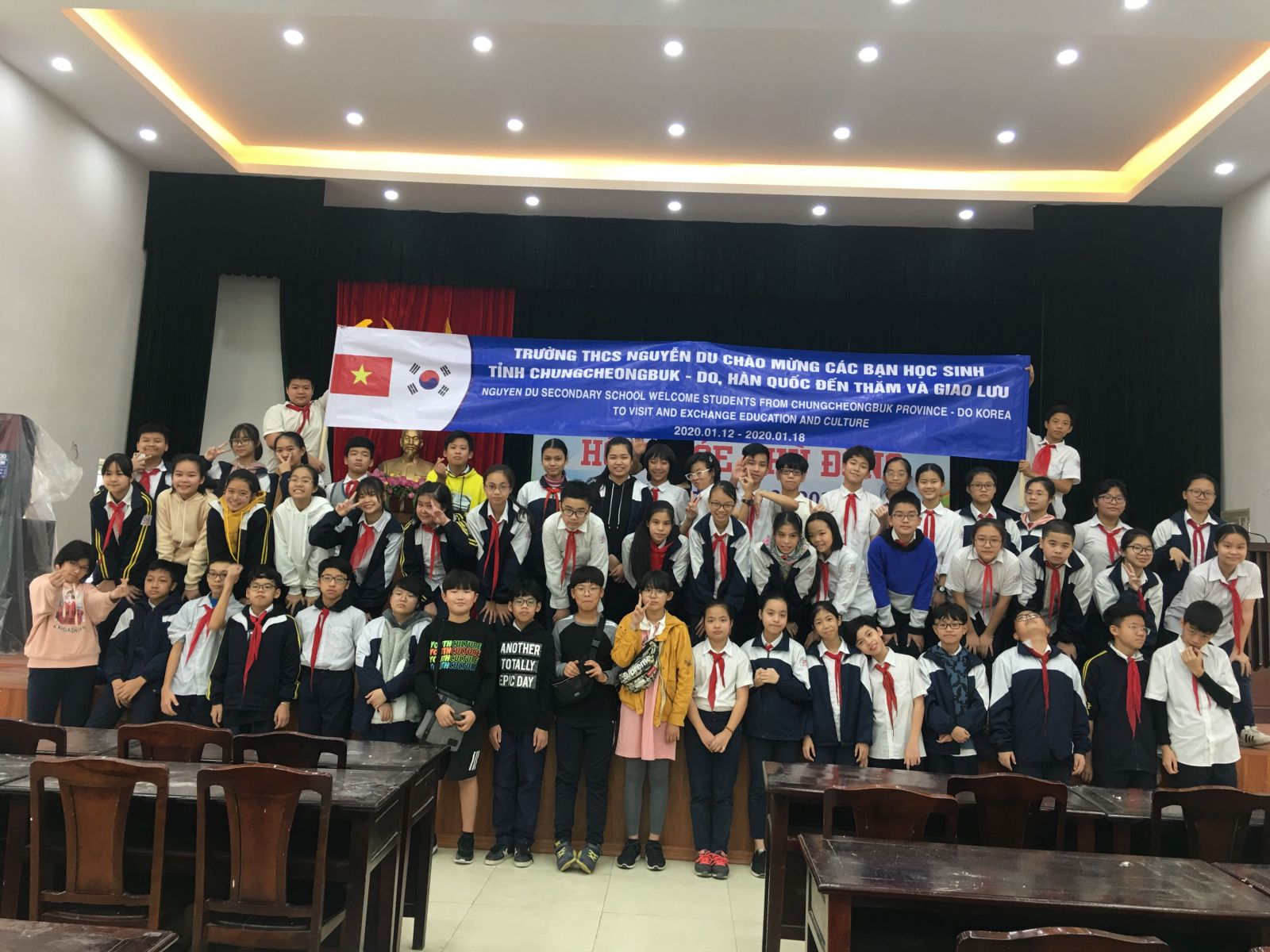 Triển khai phần 2 của Chương trình giao lưu, trao đổi văn hóa tại Hàn Quốc năm học 2019-2020, Sở GD & ĐT Hà Nội sẽ đón đoàn của cán bộ, giáo viên và học sinh tỉnh Chungcheongbuk, Hàn Quốc từ ngày 12/01/2020 đến ngày 18/01/2020. Trường THCS Nguyễn Du rất vinh dự được đón 04 bạn học sinh của Hàn Quốc đến học tập, giao lưu, chia sẻ kinh nghiệm. Buổi tối, các học sinh Hàn Quốc được trải nghiệm cuộc sống, sinh hoạt cùng gia đình người Việt.