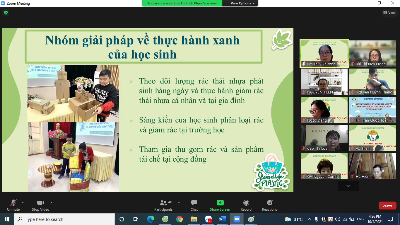 Trong thời gian thực hiện chương trình, Ban thiếu niên nhà trường sẽ phát động cuộc thi “Đại sứ xanh” nhằm huy động sự tham gia và xây dựng thói quen bảo vệ môi trường cho học sinh.