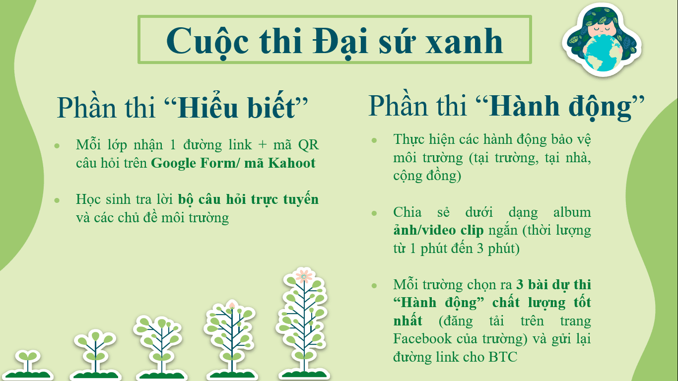 Thông tin về cuộc thi “Đại sứ xanh” nhằm huy động sự tham gia và xây dựng thói quen bảo vệ môi trường cho học sinh.